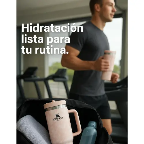 Disponible en colores modernos y sofisticados, el Quencher Stanley no solo cuida la temperatura de tus bebidas, sino también tu estilo. Su capacidad de 1,18 litros es perfecta para acompañarte durante toda la jornada, sin necesidad de recargas constantes.